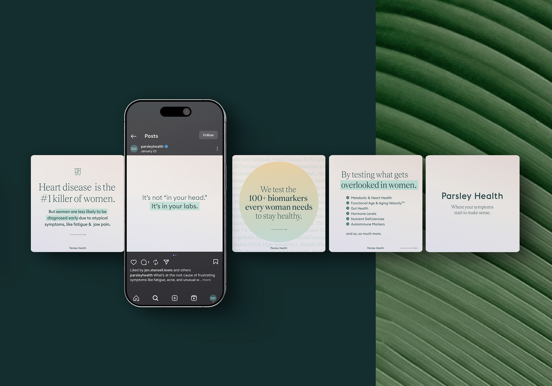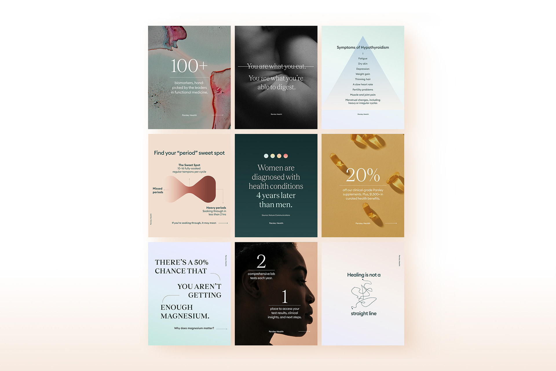 As Associate Creative Director at Parsley Health, I oversee all brand design and voice/tone, managing agencies, designers, and copywriters. I also collaborate with the Product and Engineering teams to oversee the brand's application within the product itself.