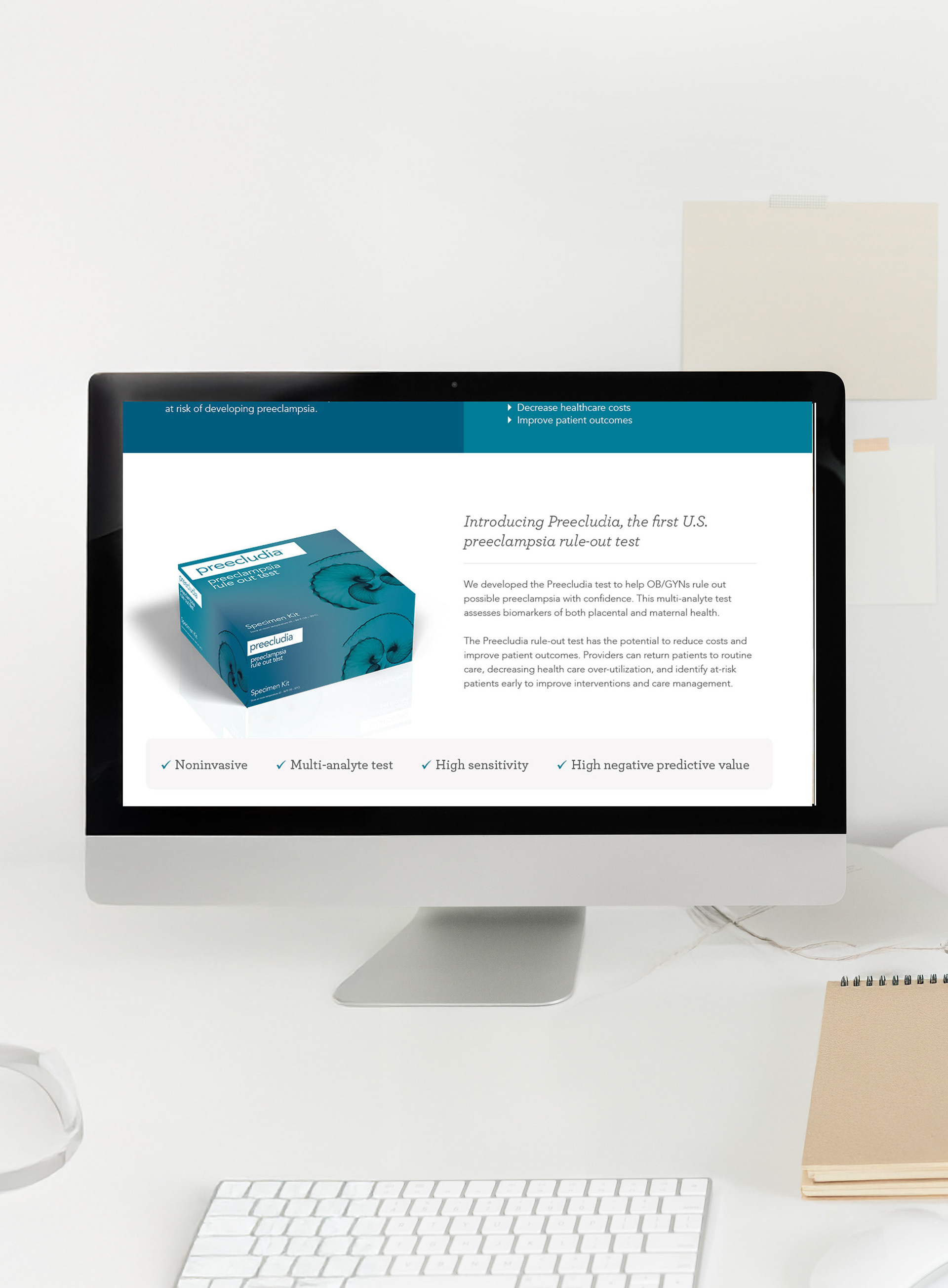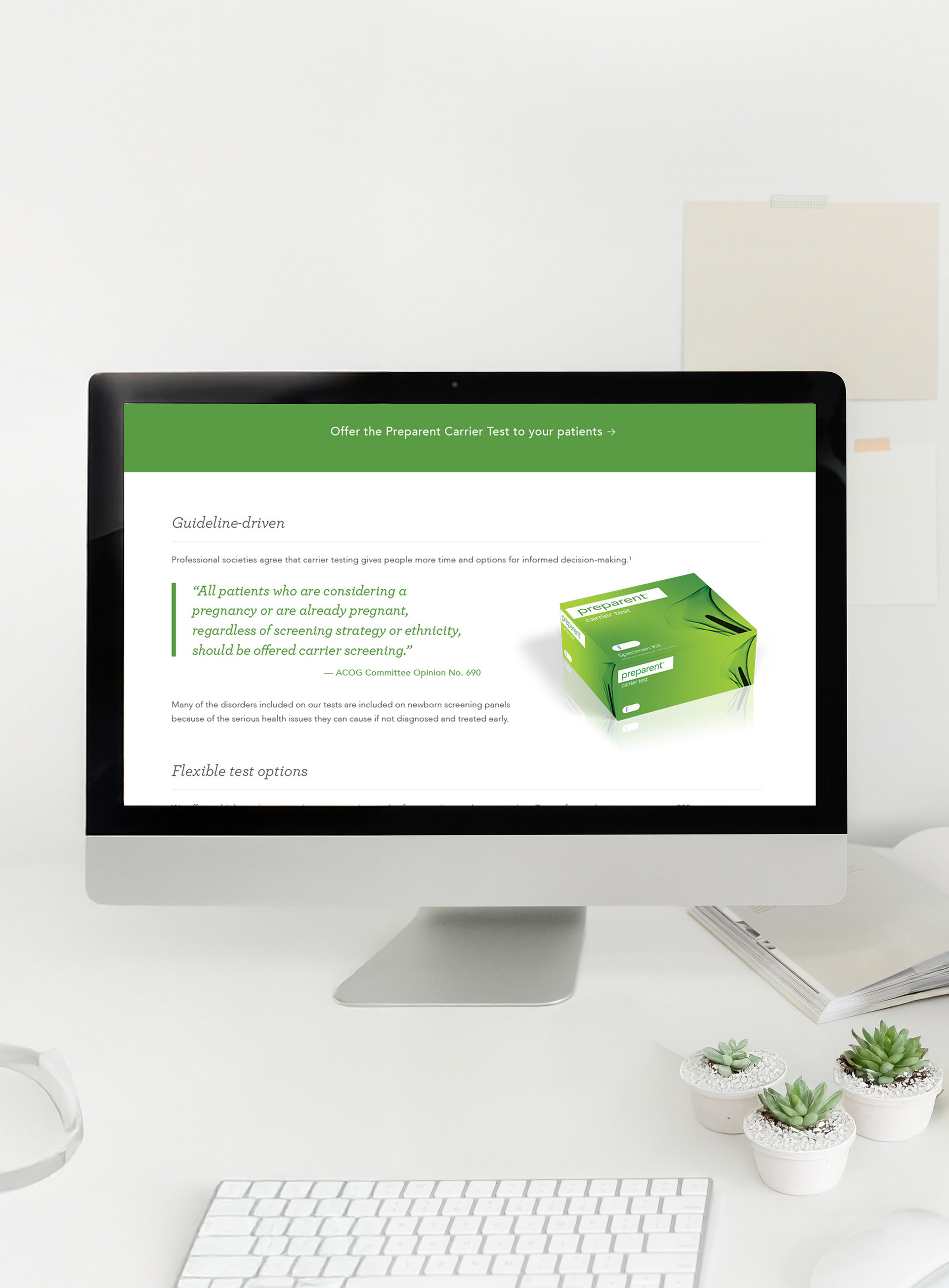 Desktop version of interactive, provider-education landing page created for Progenity using Ceros - an online web development application.